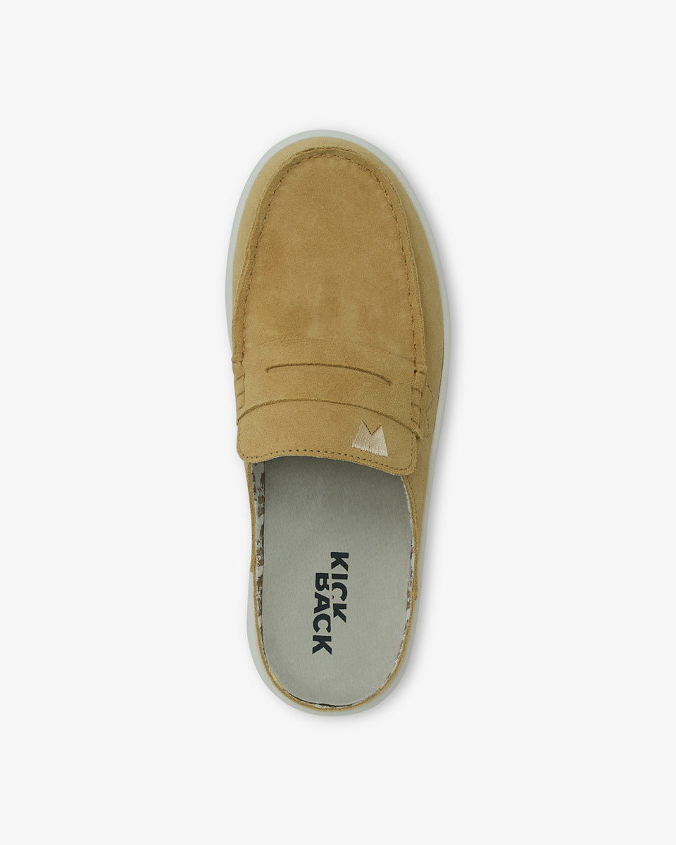 A revelation rather then revolution. The Frenchy moc toe mule in luxurious suede, a classic loafer style combined with KickBack's new wave sole.